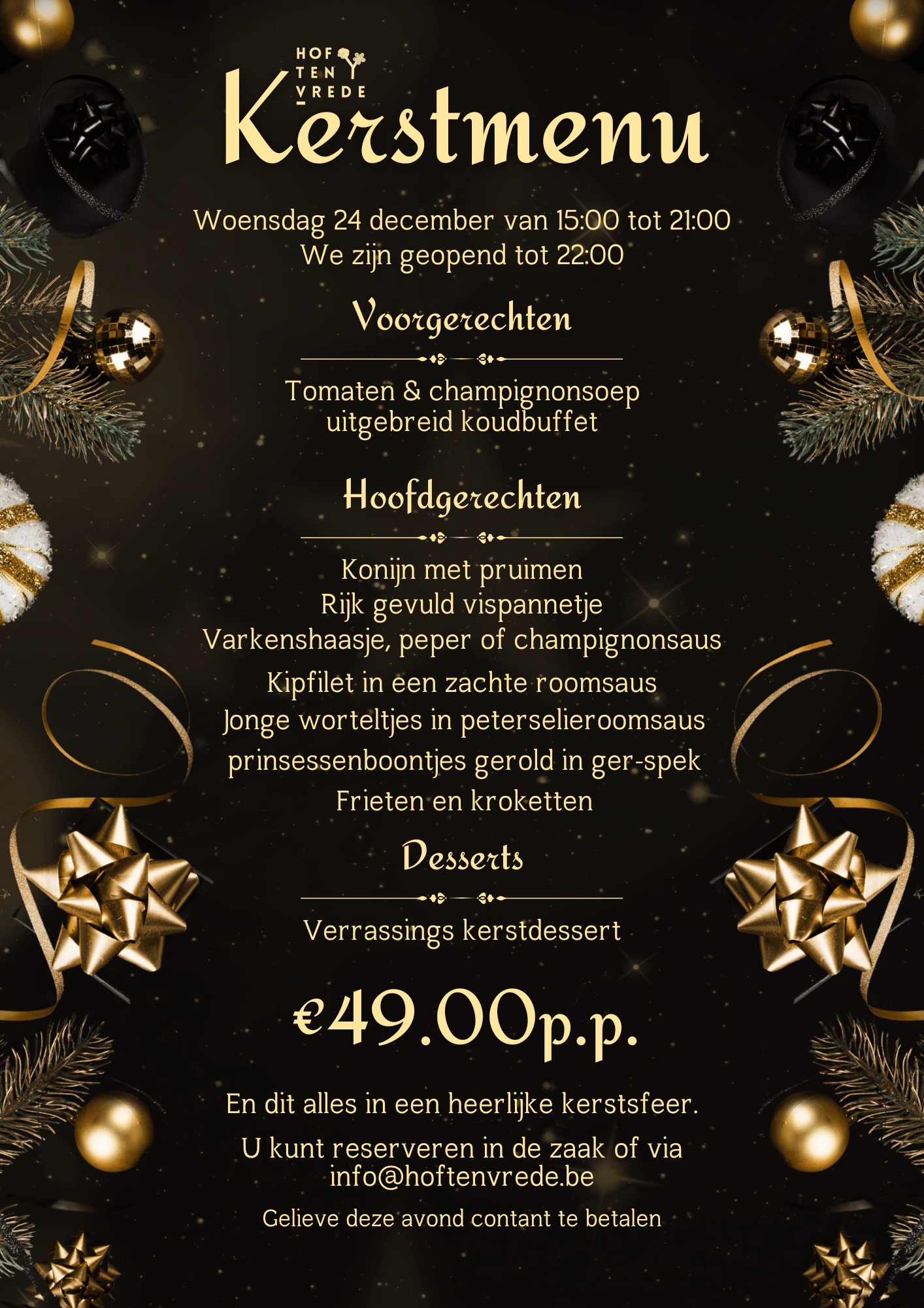 Kerstmenu woensdag 24 december van 15.00 hr tot 21.00.hr
